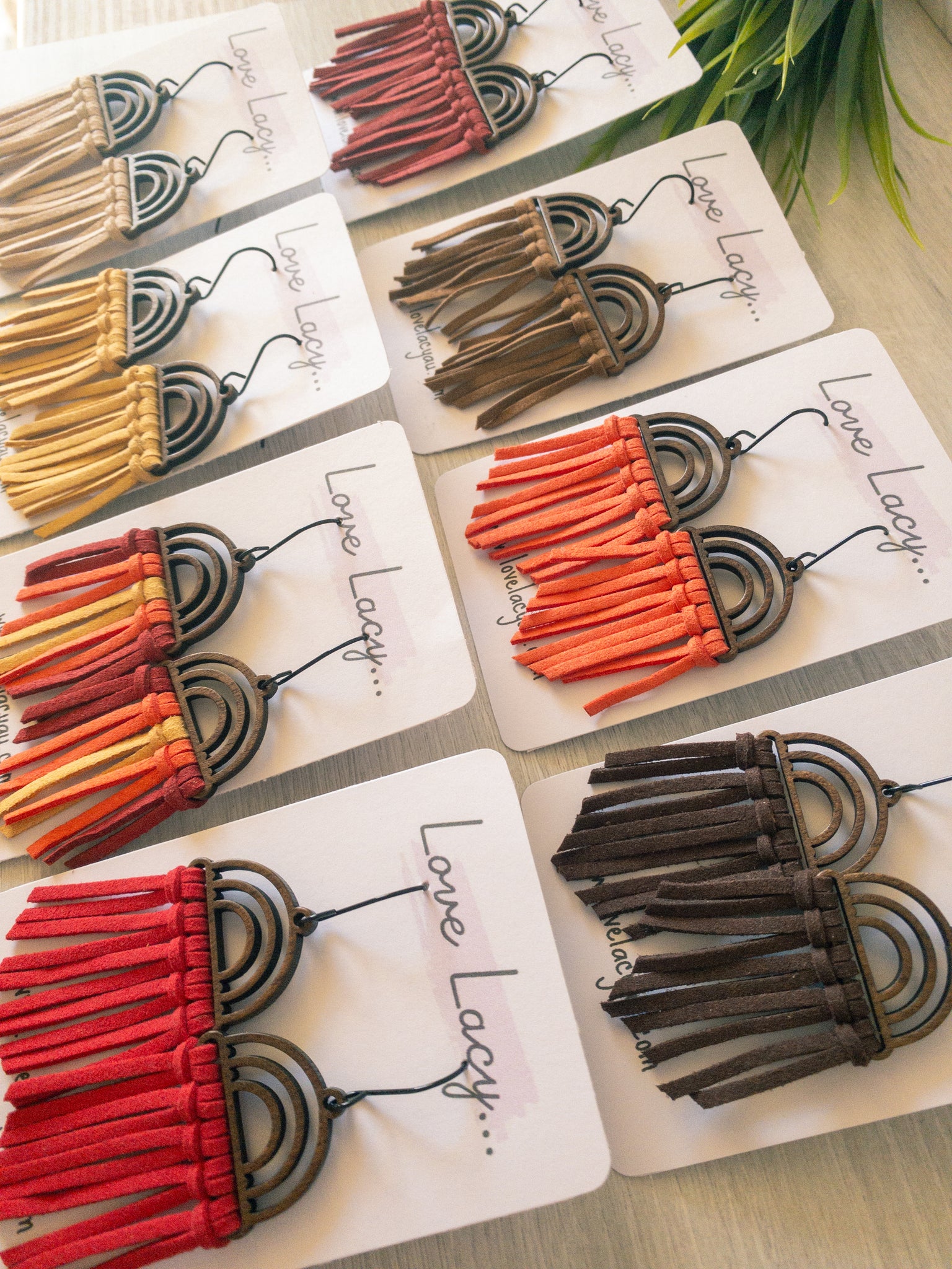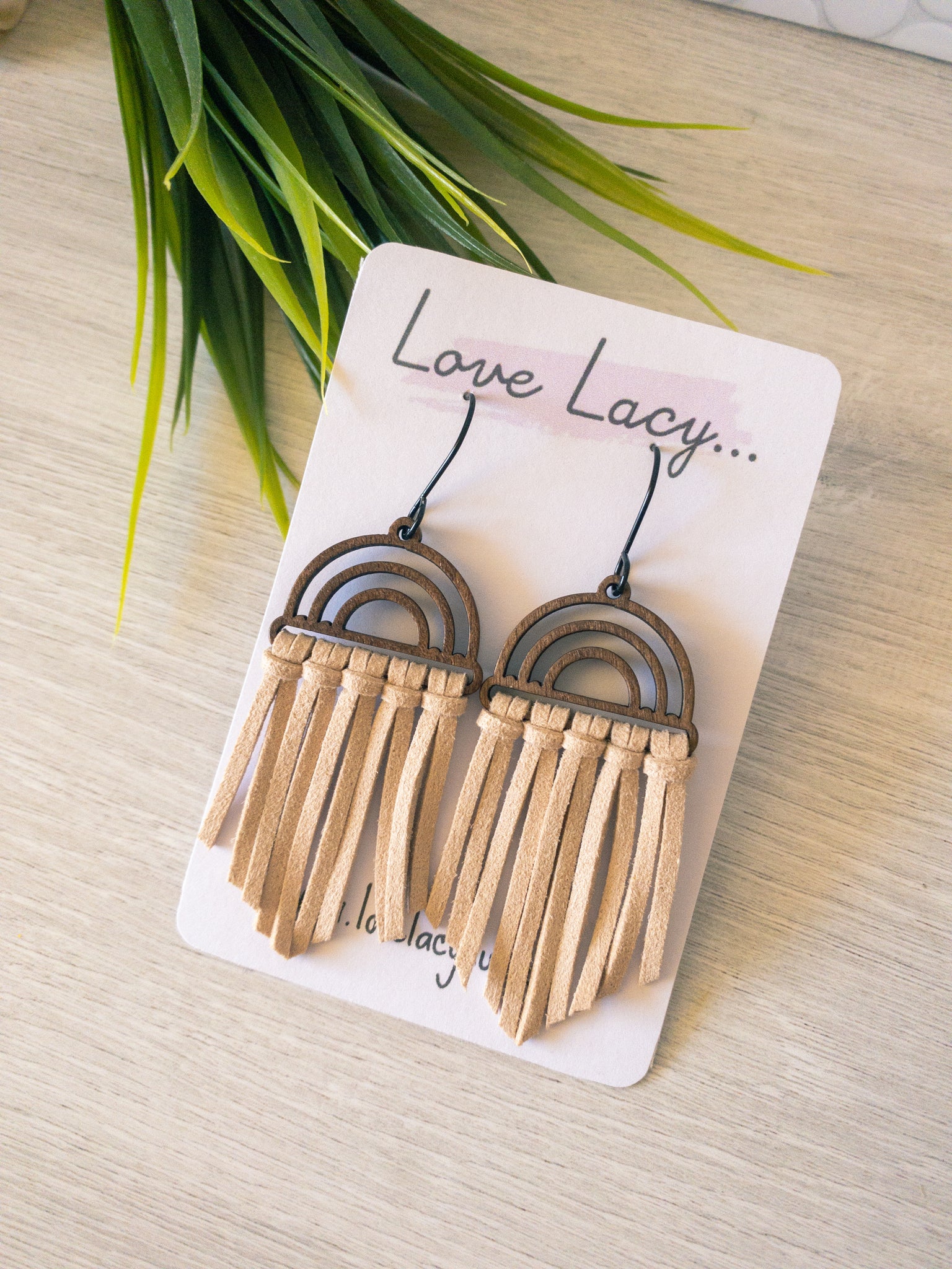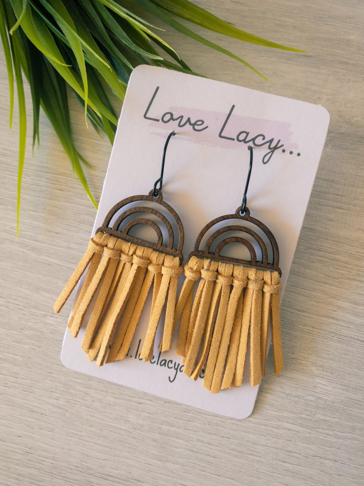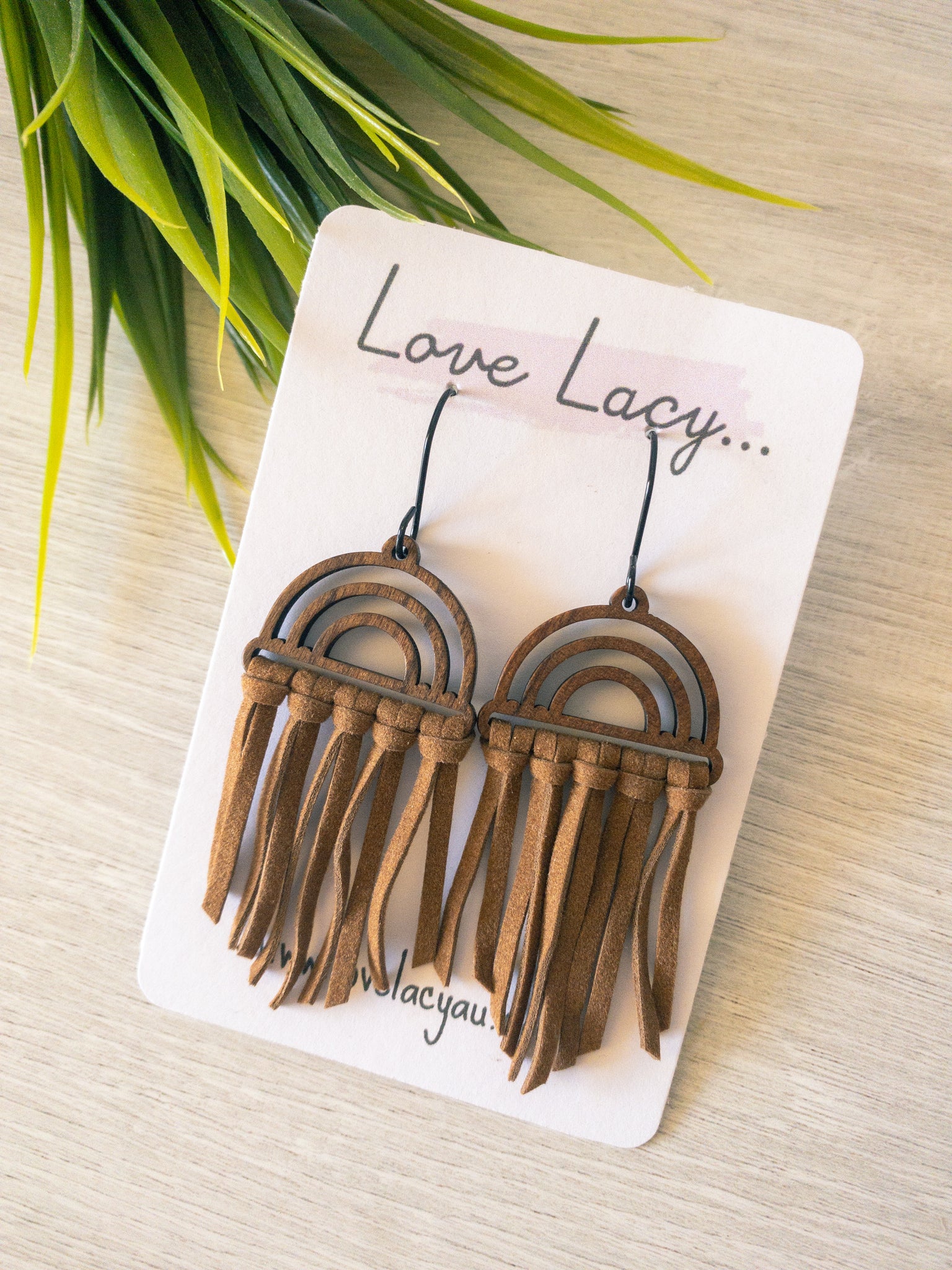 The Shireen dangles are made with a wooden arch charm with black hooks and thin suede pieces. They come in 8 different colours and are super lightweight.